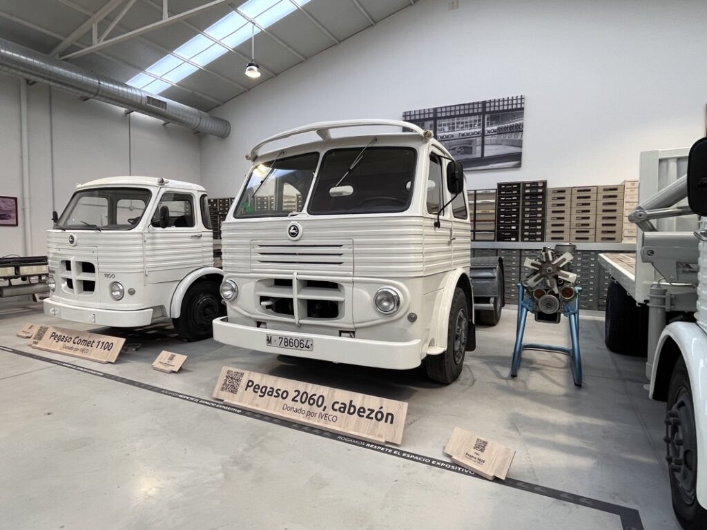 Entre todas las secciones, destacó especialmente la zona Pegaso, auténtico orgullo de la automoción española. Allí pudimos admirar una amplia representación de camiones y vehículos industriales de la marca, pero sin duda la gran protagonista fue el Pegaso Z, que recibe al visitante nada más acceder al museo. Este modelo, considerado una de las joyas más valiosas del automovilismo nacional, fue desarrollado en la década de 1950 con un motor V8 de entre 2,5 y 3,2 litros, capaz de alcanzar potencias superiores a los 200 CV y velocidades próximas a los 240 km/h, cifras excepcionales para su tiempo. Su diseño, su sonido y su presencia siguen cautivando más de siete décadas después.