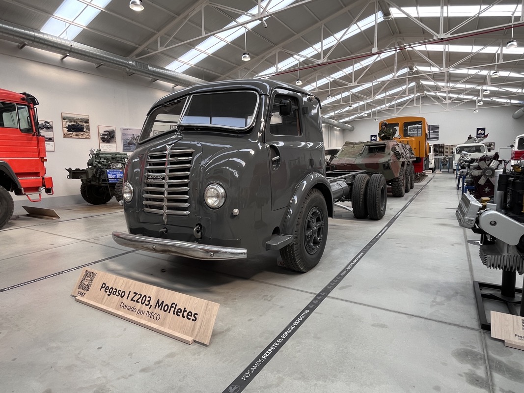 Entre todas las secciones, destacó especialmente la zona Pegaso, auténtico orgullo de la automoción española. Allí pudimos admirar una amplia representación de camiones y vehículos industriales de la marca, pero sin duda la gran protagonista fue el Pegaso Z, que recibe al visitante nada más acceder al museo. Este modelo, considerado una de las joyas más valiosas del automovilismo nacional, fue desarrollado en la década de 1950 con un motor V8 de entre 2,5 y 3,2 litros, capaz de alcanzar potencias superiores a los 200 CV y velocidades próximas a los 240 km/h, cifras excepcionales para su tiempo. Su diseño, su sonido y su presencia siguen cautivando más de siete décadas después.